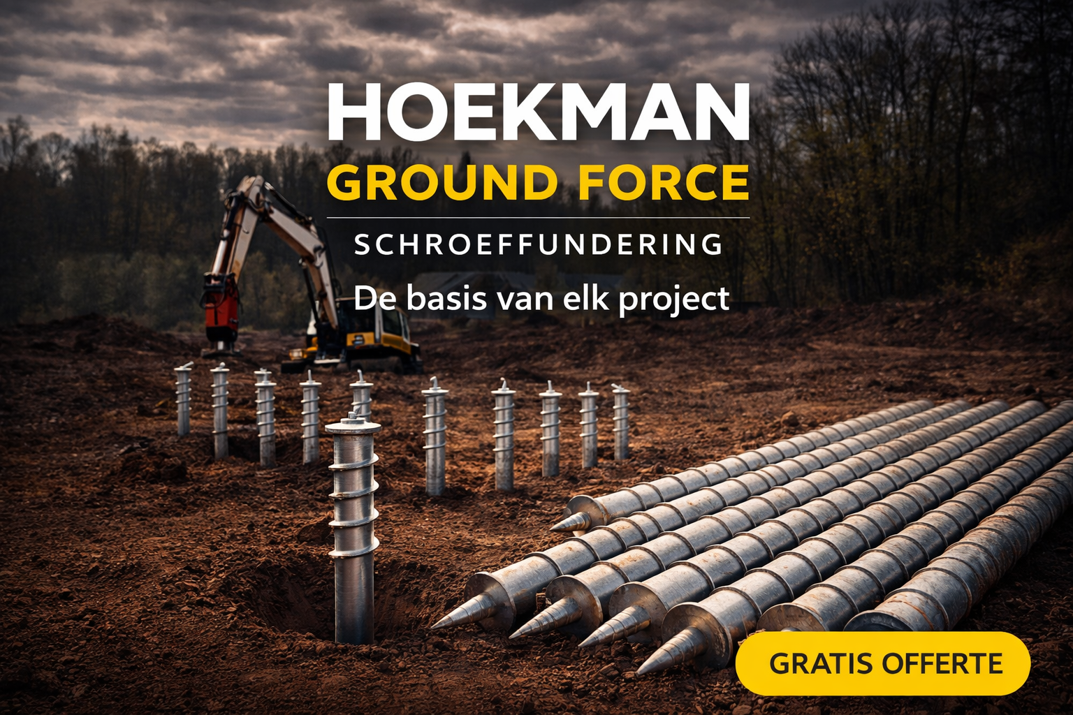 Bij Hoekman Ground Force staat efficiƫntie en kwaliteit centraal. Ons proces is ontworpen om jou snel en zorgeloos een duurzame fundering te bieden, met minimale verstoring van je omgeving.